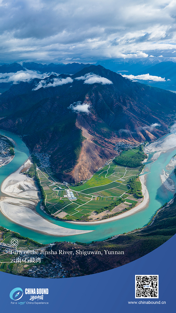 В град Shigu на автономния окръг Yulong Naxi, провинция Yunnan, се намира Shiguwan по поречието на река Jinsha. Тук реката прави драматичен завой, образувайки удивителен V-образен завой, докато се вие около околните планини. Отдалече реката се извива и се вие като течаща лента, носеща се през долините – мощна, но изящна, зашеметяващо напомняне за артистичността на природата, изваяна от водата във времето.