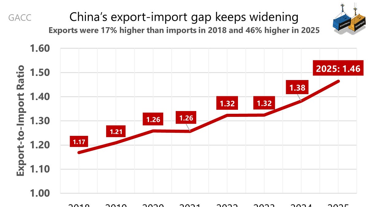 В 5-годишния план се говори за балансиране на вноса и износа, но външните данни все още показват, че износът продължава напред. Идентични твърдения бяха направени през 2014 г. (Li Keqiang, Работен доклад).