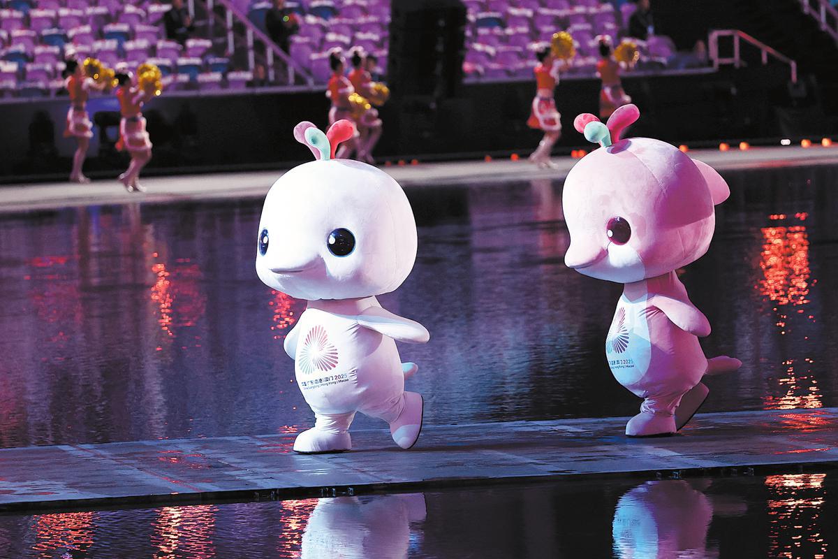 Чрез своите завъртания на главата, високи скокове и игриви лудории, талисманите Xi Yangyang и Le Rongrong, вдъхновени от китайския бял делфин, се превърнаха в неочаквани звезди на текущите 15-ти Национални игри, открадвайки шоуто на места в трите региона домакини.