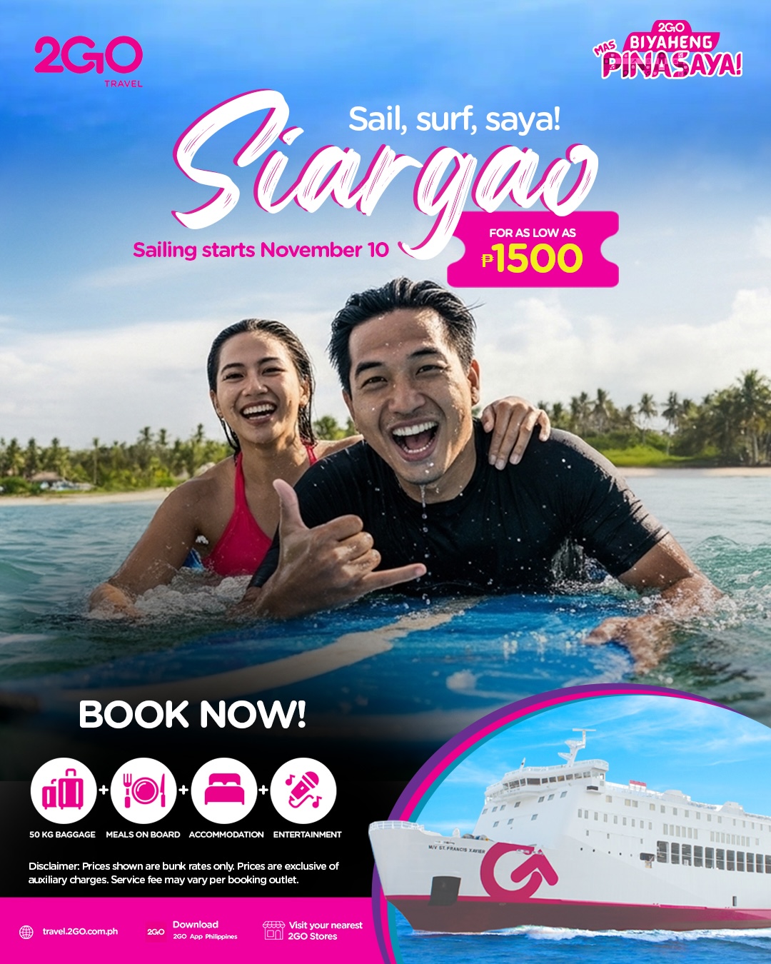 MANILA, Philippines — 2GO Travel, the Philippines’ largest premier sea travel provider, is set to make waves once again with the launch of its new Manila–Siargao route beginning November 10, 2025. This milestone marks a major step toward making one of the country’s most beloved islands more accessible and affordable for both travelers and traders.